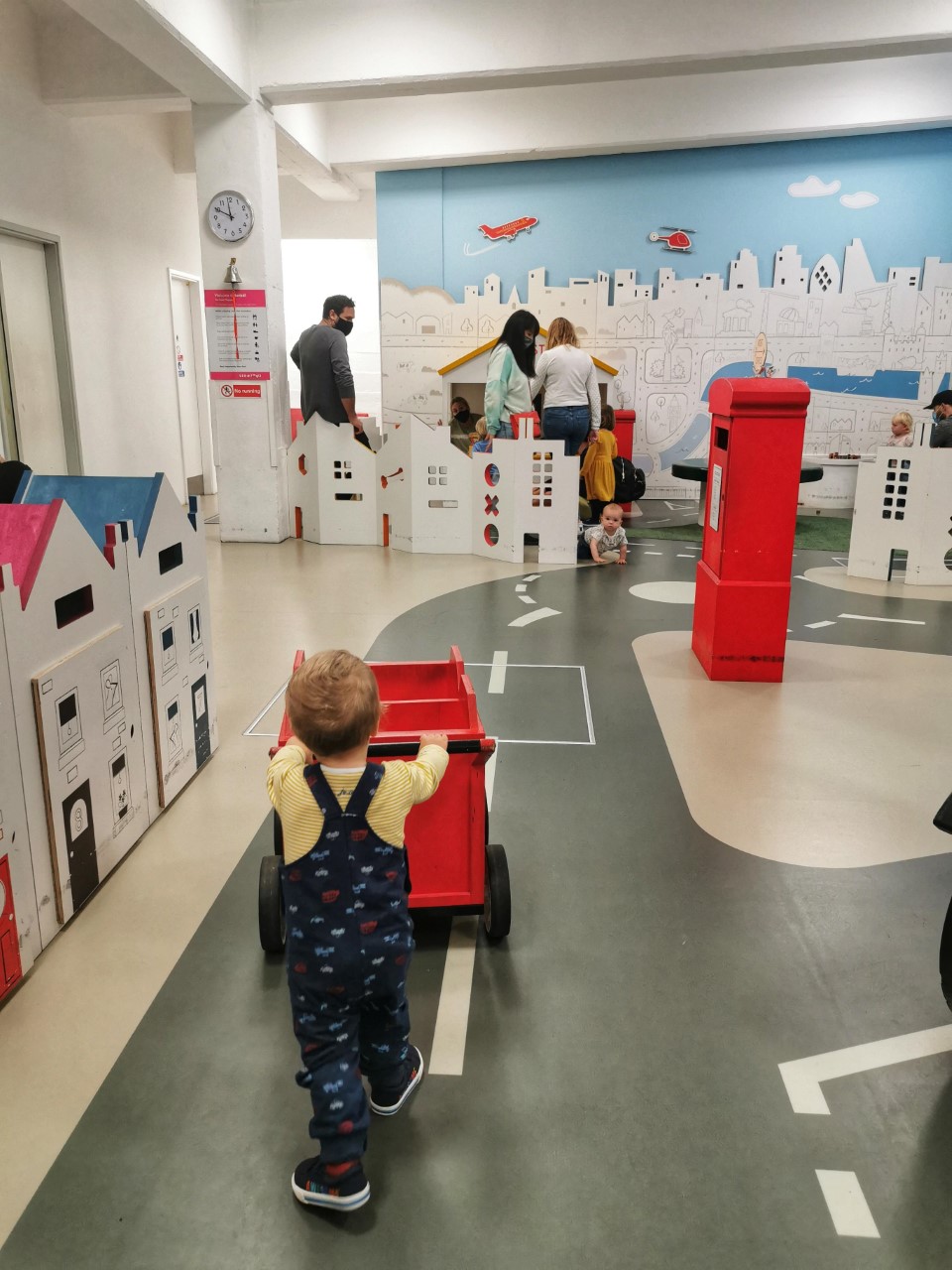 This is such a popular and gem of a Walthamstow venue! It’s really small (which is lovely) with a limit on the amount of children per session to manage the space, has well thought out with different rooms for the children to engage in, and huge seating area in the cafe part for mums to relax in afterwards/before if required/meeting up with friends. LM had a frickin blast running between all the rooms and playing with all the various role play items!! Therefore excuse these photos: it was really hard to get a good picture of him when he was moving so much in enjoyment! (Also some random activity choices going on from LM here, brushing worksurfaces etc- it was brilliant!!) This is definitely one of our top contenders for our best places in London!