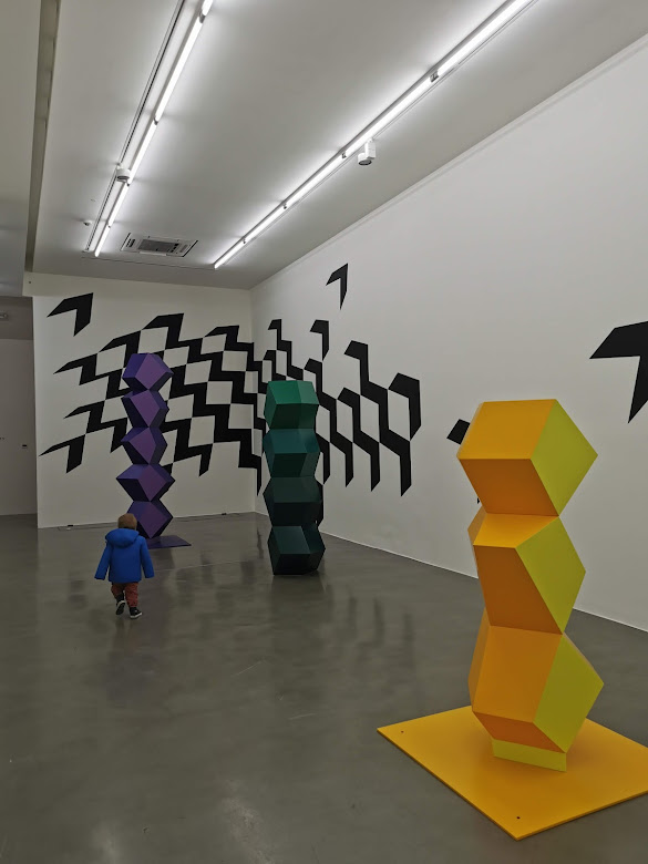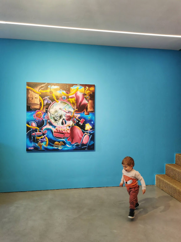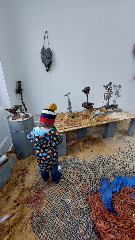 This upstairs space is totally HUGE, so it’s great for little ones letting off steam. The exhibit we personally went to, as per photos below, was a bit of a risk, as had many sculptures at little hands level. However, apart from trying to stroke the lady in the middle photos hair, we really didn’t have any problems which was also brilliant!