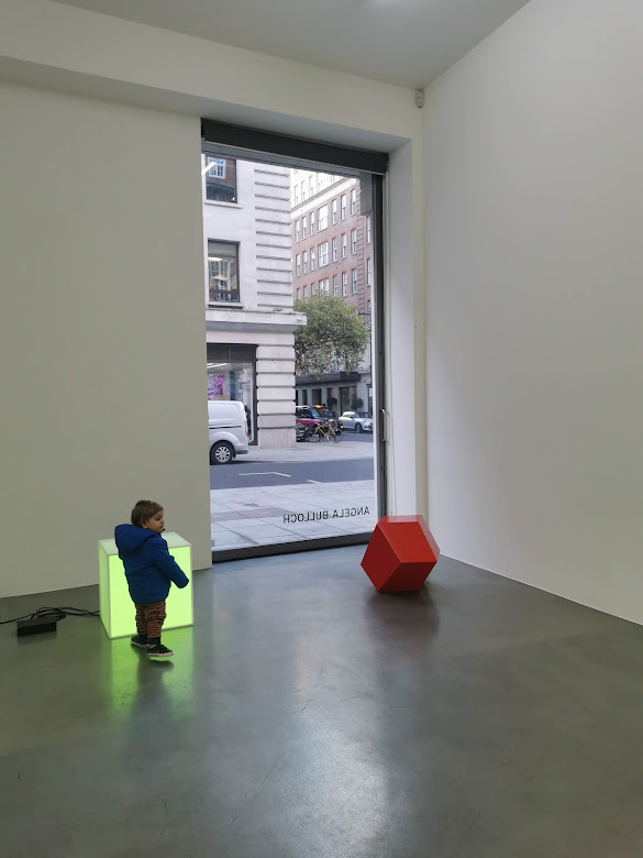 This lovely little gallery is just round the corner from Alison Jacques. It’s on street level, and has stairs leading down to another part. We were treated so warmly here, allowed to leave buggy to one side, and they were very good humoured about LM repeatedly trying to climb the stairs into their little office!