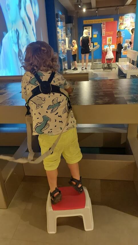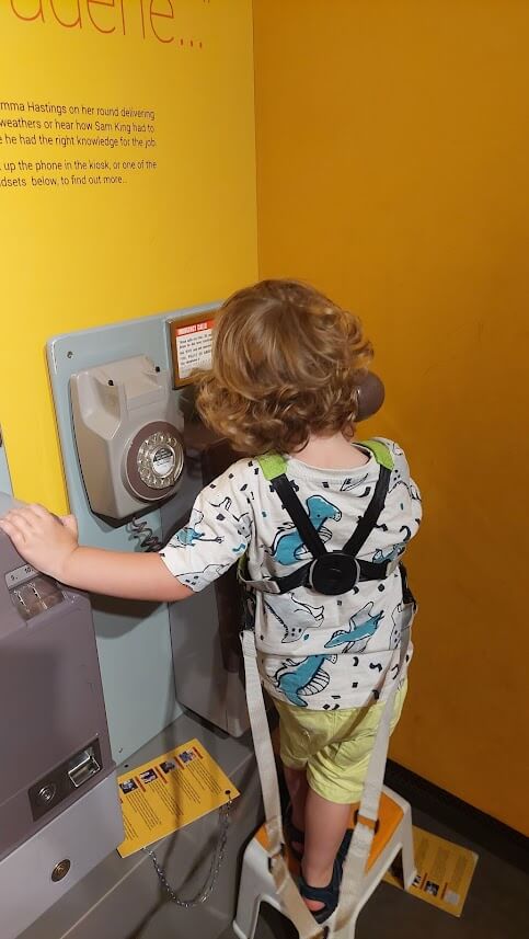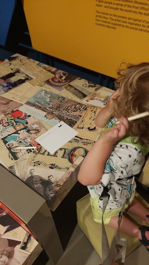 Firstly, obviously the Museum itself is full of information and facts that of course an older child can read and engage with. However, there are also many interactive elements for both younger and older children, and LM was able to touch things like the phones, and stand on steps to “write” his postcards! that really helped him engage with The Postal Museum and feel like he was participating. Huge inclusivity win!